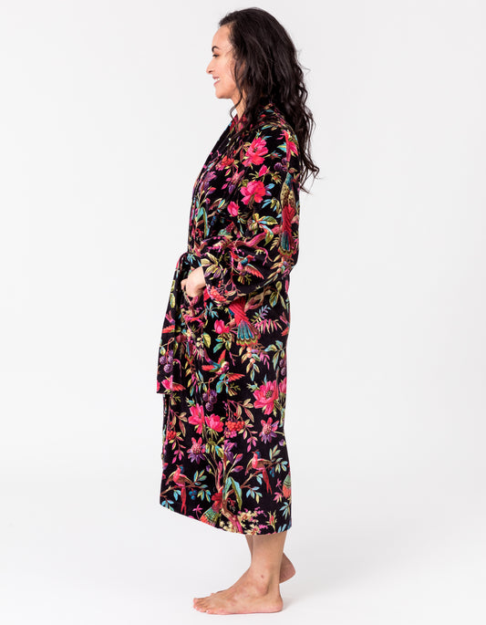Paradise Black Velvet Kimono Robe