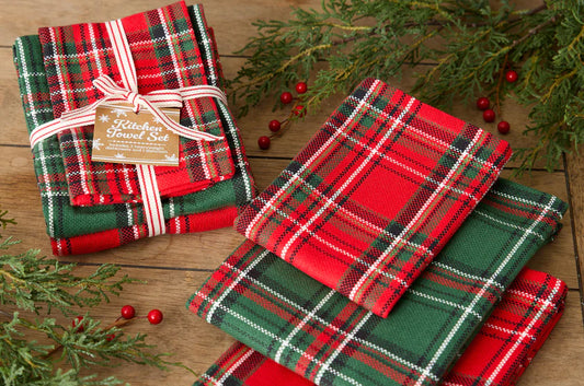 Boughs of Holly Plaid Heavyweight Kitchen Set of 3