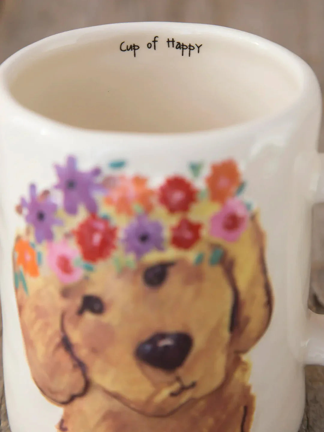 For all our dog lovers, you'll want to add this embossed mug to your collection! It features an adorable Golden Retriever wearing a floral crown. We even added the cheerful message, "cup of happy" under the rim so you'll see it with every sip! Keep it on the shelf with the rest of your Natural Life Mugs or keep it on your counter or nightstand to hold small items like pens, coins, and keys.