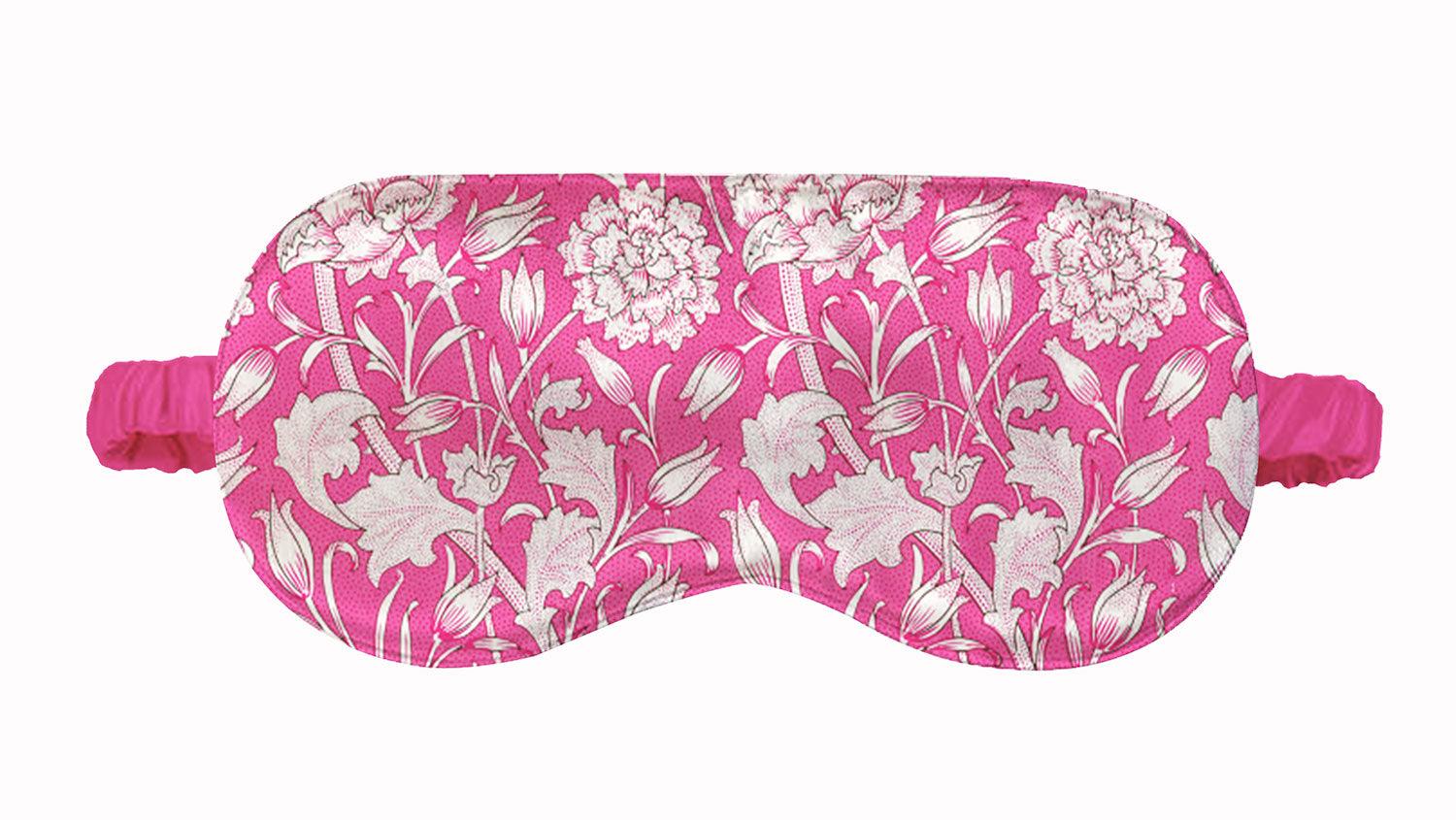 Satin Eyemask with elastic strap in William Morris design Scented with Lavender Wide eye shade, helps block out light.