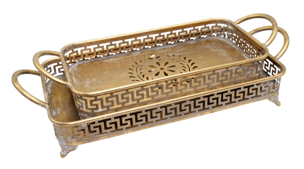 Crafted with a stunning gold finish, the Gold Grecian Tray adds a touch of elegance to any space. Perfect for entertaining or display, its sleek design is both functional and stylish. Elevate your serving game and impress your guests with this luxurious tray.