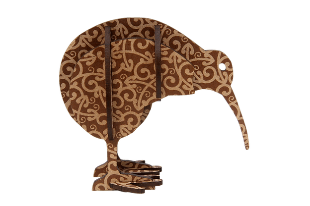 The kiwi comes flat in a small pack or a box which makes it the ultimate souvenir. We have cut out the pieces using our laser cutter. Assemble using the instructions provided. We use printed MDF which is safe to travel with to countries with strict boarder rules.
