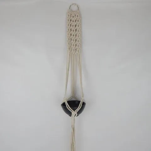 Elevate your plant game with our Macrame Plant Holder. Made with durable and stylish macrame, this holder adds a touch of bohemian charm to any room. The perfect addition to any plant-lover's collection, this holder securely displays your plants while allowing them to thrive.