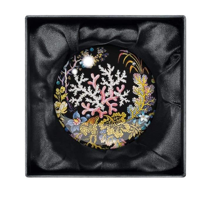 A beautiful eye-catching image under a clear crystal dome, each paperweight is packaged in a sturdy lined box with bellyband.