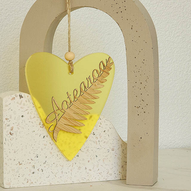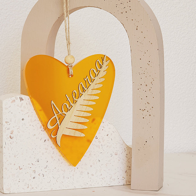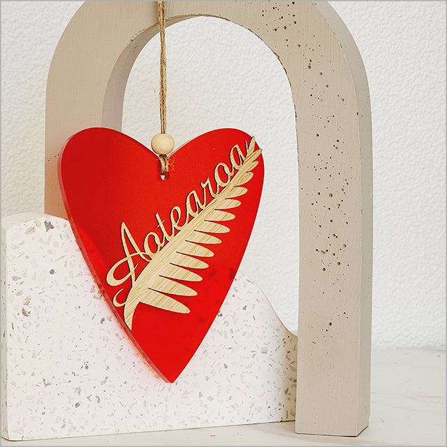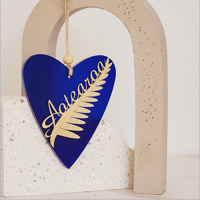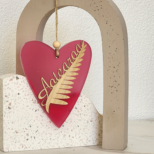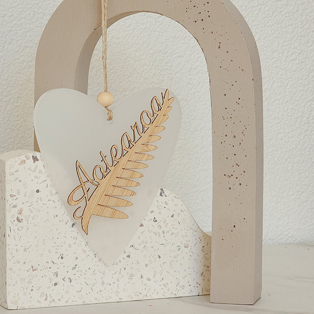 Ornament Heart: Silver Fern Aotearoa
