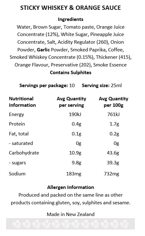 Infused with the vibrant zest of sweet, tangy oranges and a subtle hit of whiskey smokiness, this versatile sauce shines as both a marinade or a coating for ribs. The flavour bursts forth with deliciousness used as a dipping sauce or simply a finishing touch to a meal. Perfect for BBQ enthusiasts and home cooks alike.